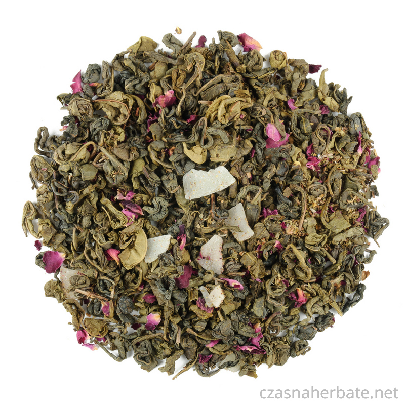 Składniki: herbata zielona Gunpowder, pokrzywa, aloes 8%, płatki róży, aromat