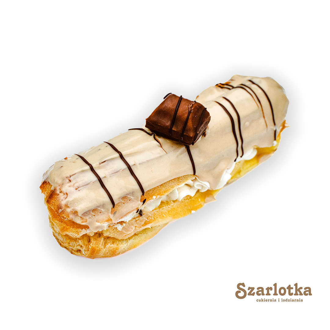 Ekler Kinder Bueno to wyjątkowa wersja klasycznego deseru, który zachwyca smakiem kremu inspirowanego popularnym batonikiem Kinder Bueno. Łączy delikatne ciasto parzone z kremem o smaku orzechów laskowych i czekolady z musem porzeczkowym.