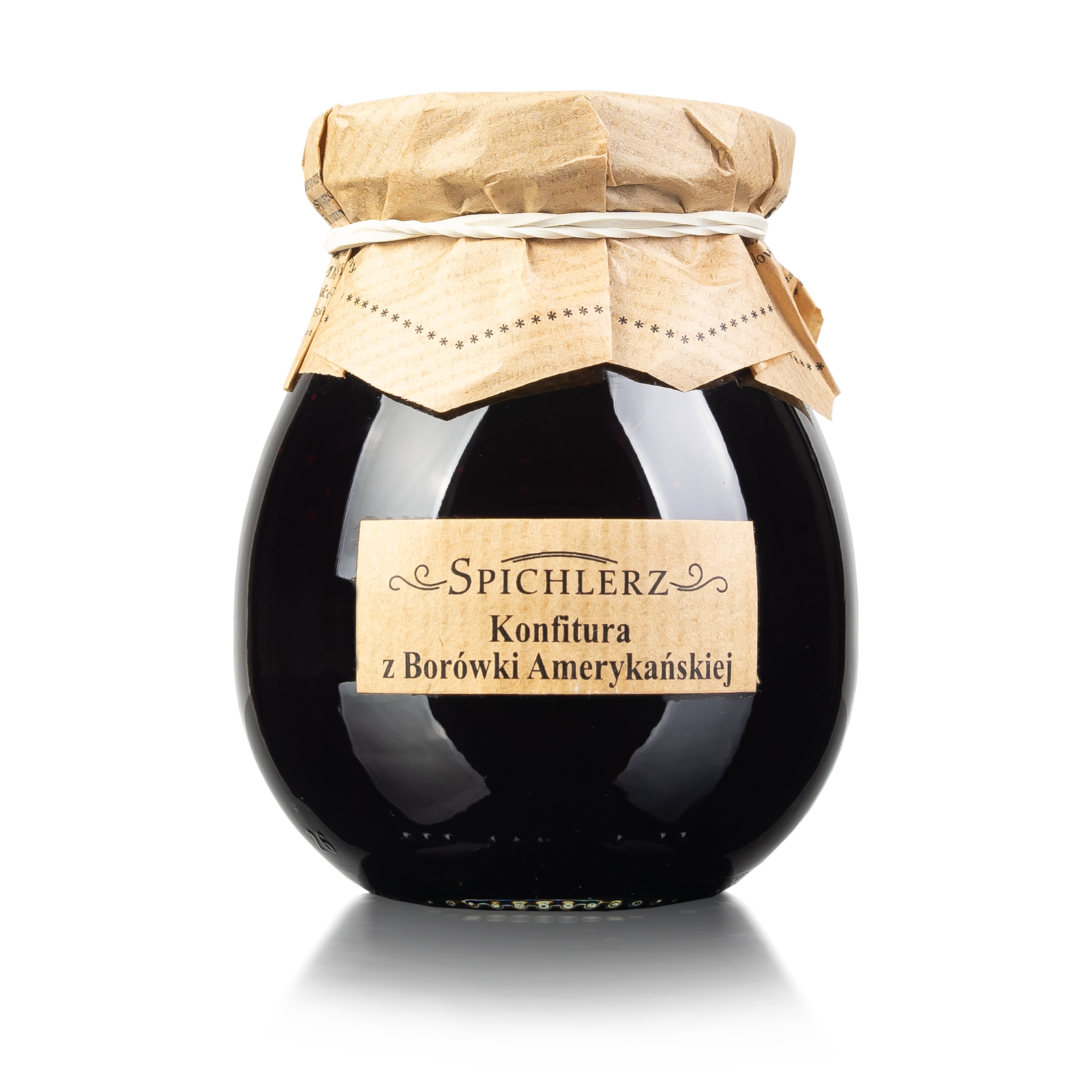 Skład: borówka amerykańska 53%, cukier, pektyna – substancja zagęszczająca, kwas cytrynowy, regulator kwasowości.