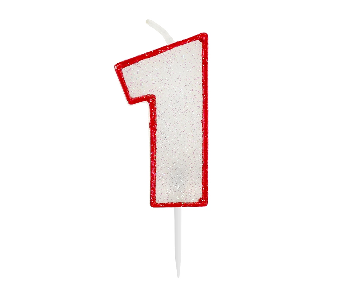 Świeczka cyfra urodziny, rocznica, CZERWONA brokat