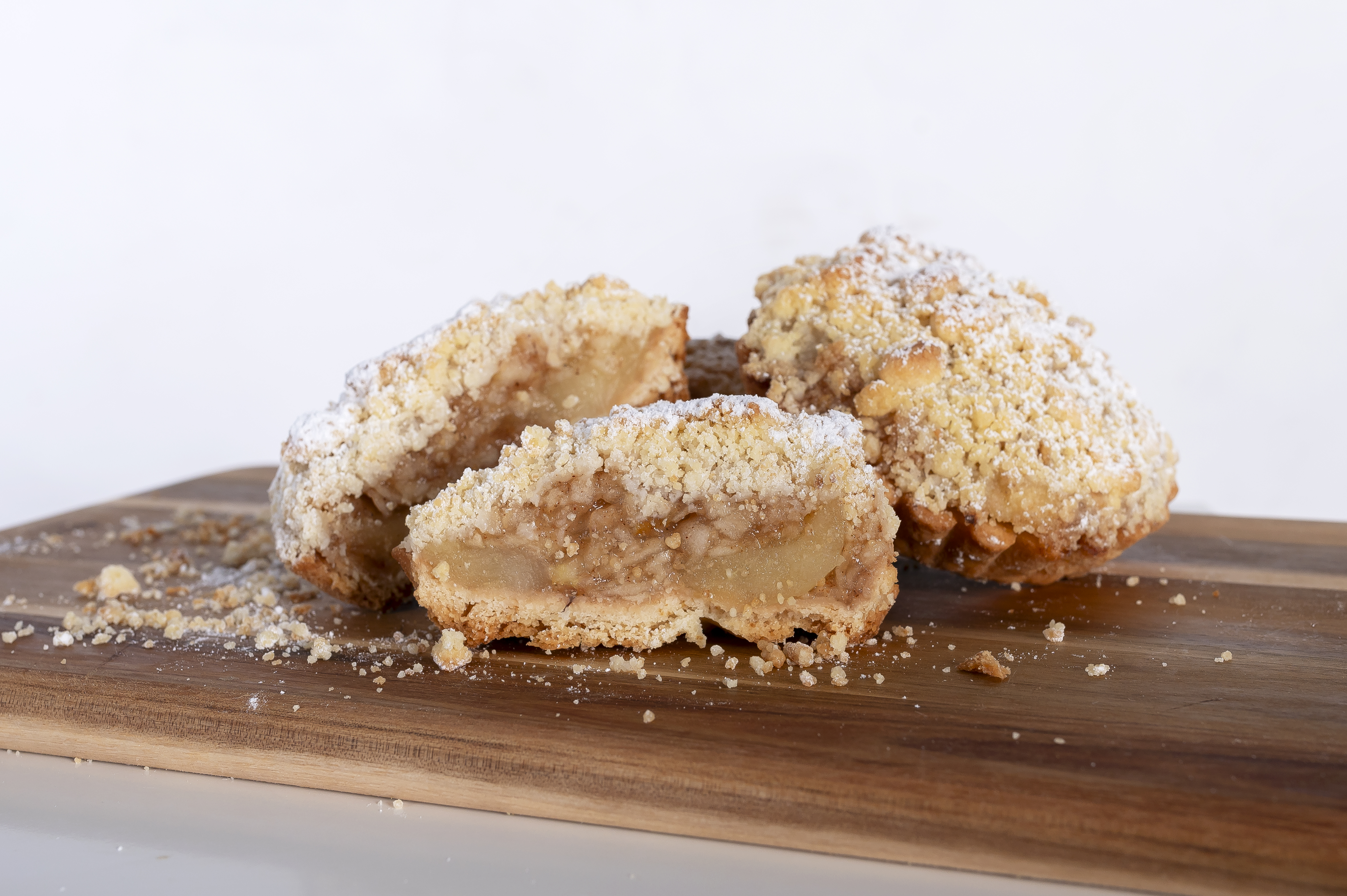 Tartaletka z jabłkiem to kruche ciastko, wypełnione aromatycznym nadzieniem jabłkowym. Idealnie sprawdza się na eleganckie przyjęcia , rodzinne spotkania czy jako słodka przekąska do kawy.