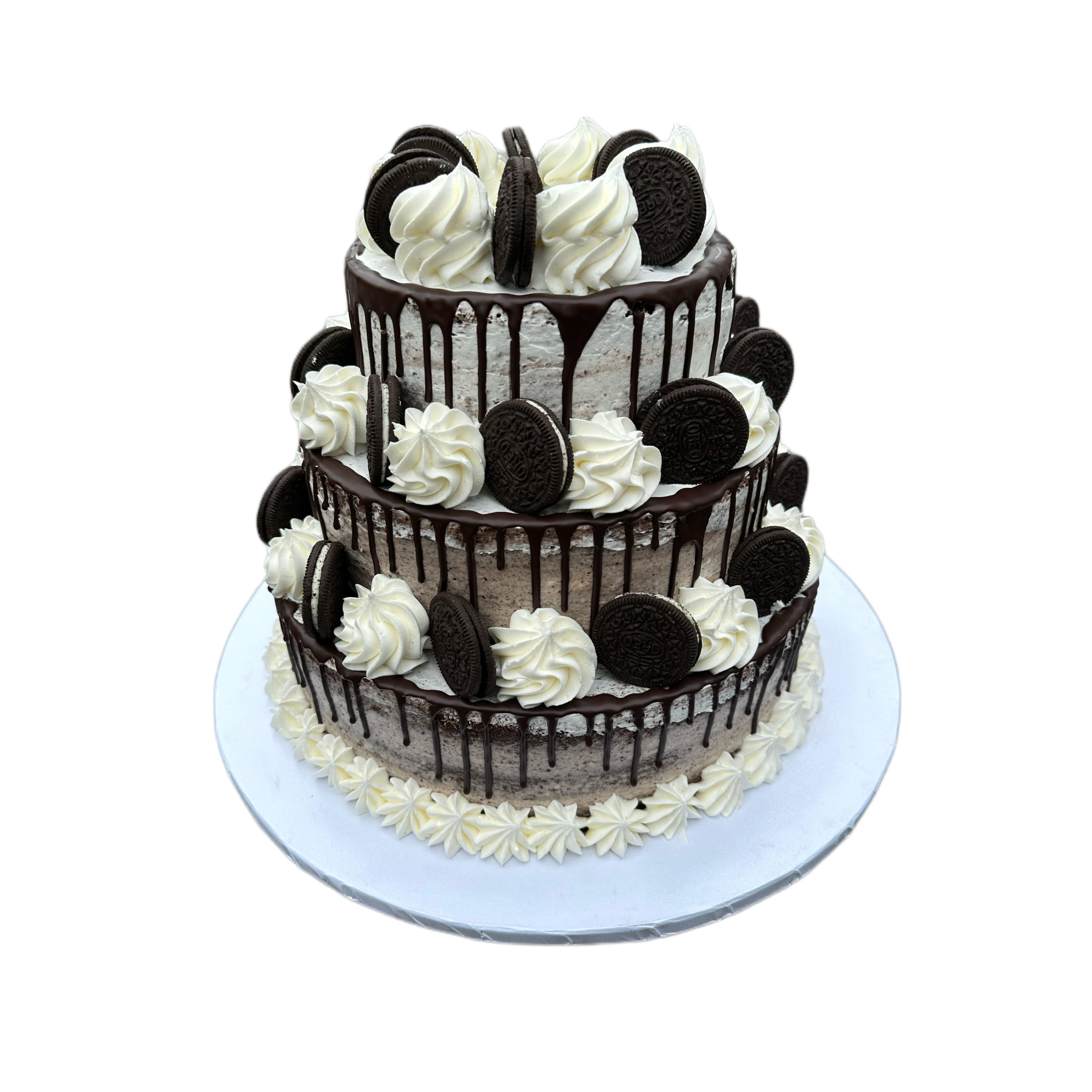 Polecamy ciemny biszkopt, przełożony delikatnym kremem na bazie naturalnej bitej śmietanki z dodatkiem rozdrobnionych ciasteczek oreo .