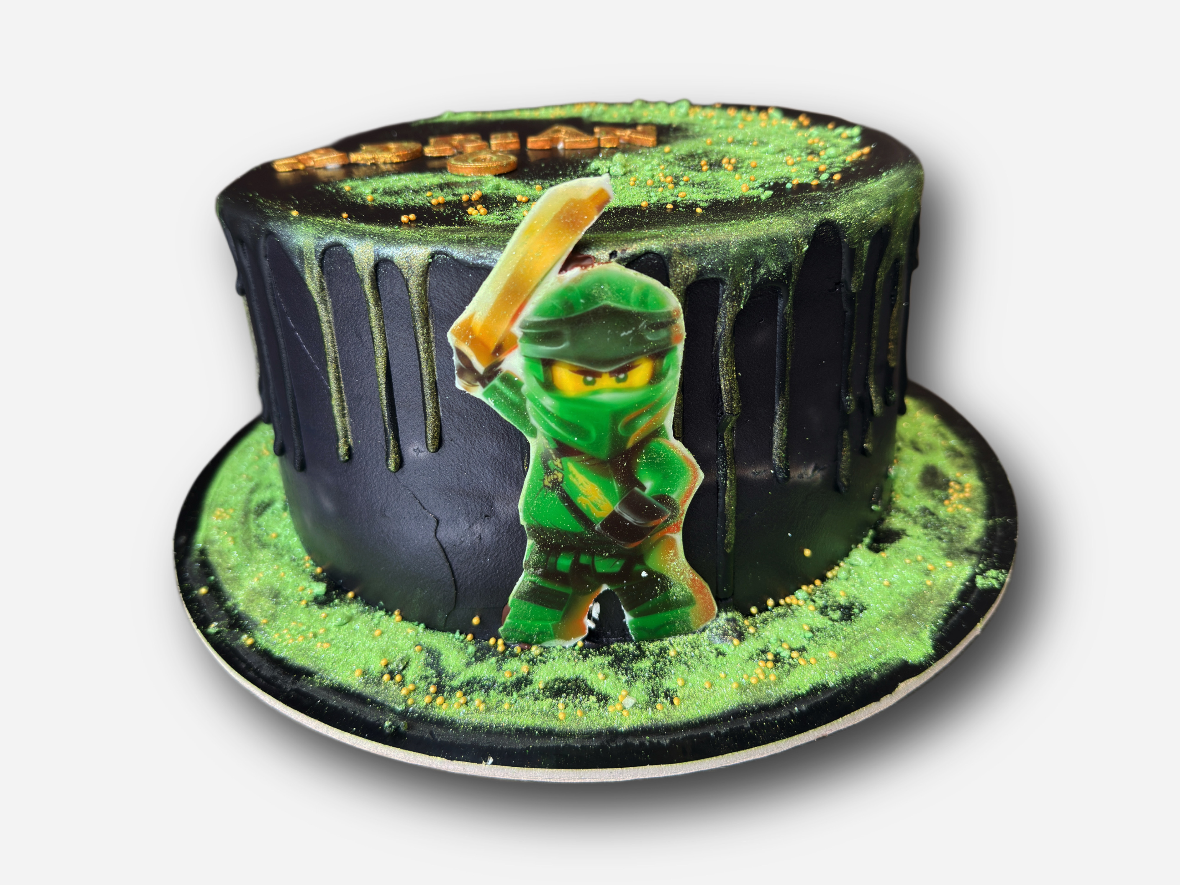 Głównym bohaterem dekoracji jest jadalna figurka przedstawiająca zielonego ninja - Lloyda, jednego z głównych bohaterów serii Lego Ninjago. To idealny tort na urodziny dla fana LEGO, ninja i wszystkiego, co związane z przygodą!
