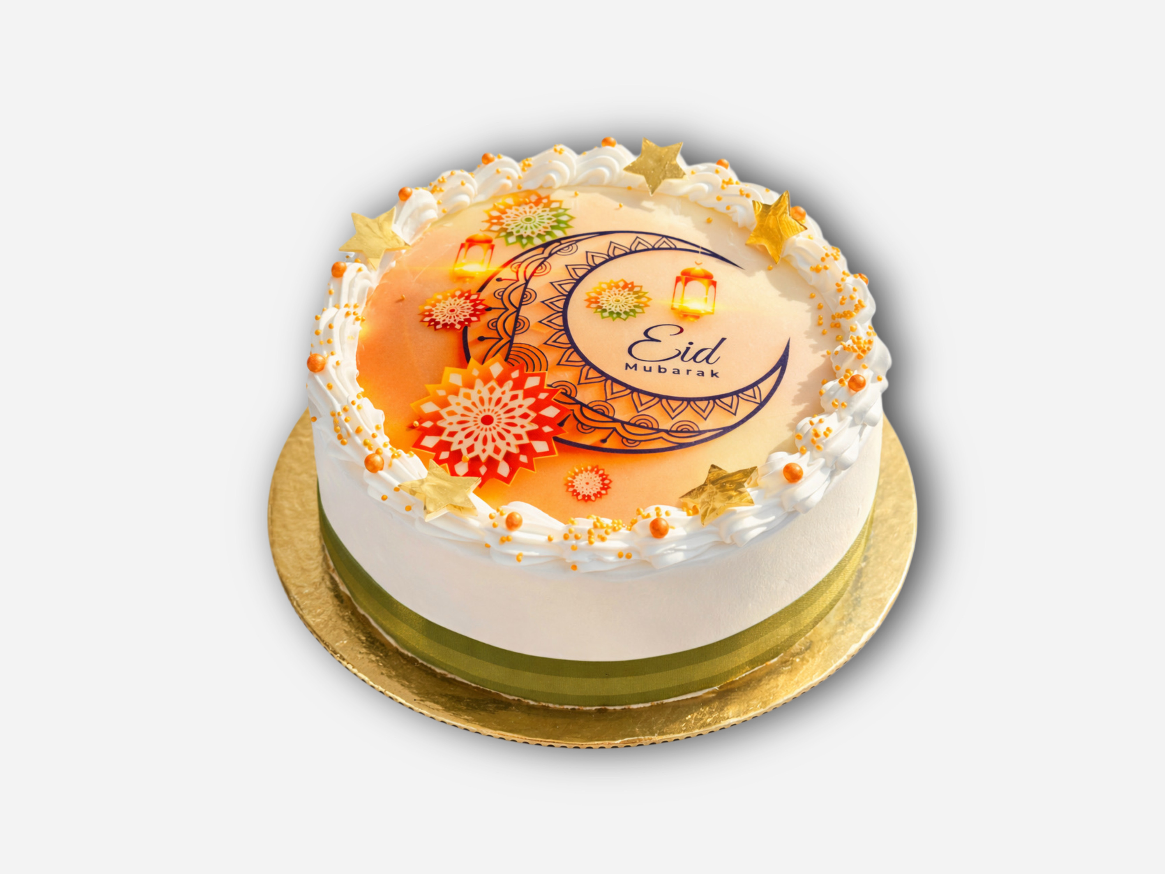 Wyjątkowy tort okolicznościowy " Złoty Blask Eid " to połączenie subtelnej elegancji i świątecznego uroku. Jego powierzchnię zdobi wysokiej jakości opłatek jadalny z efektownym, personalizowanym nadrukiem, który nadaje całości niepowtarzalny charakter. Kompozycję dopełniają starannie wykonane dekoracje: delikatne, cukrowe gwizdki, subtelna pomarańczowo - złota posypka oraz lekka, kremowa obwódka, podkreślająca finezyjny styl tortu. Całość utrzymana jest w ciepłej, złocisto - pomarańczowej tonacji, przywodzącej na myśli blask i radość wyjątkowych chwil. To idealny wybór na eleganckie uroczystości - tort, który zachwyca zarówno wyglądem, jak i dbałością o detale.